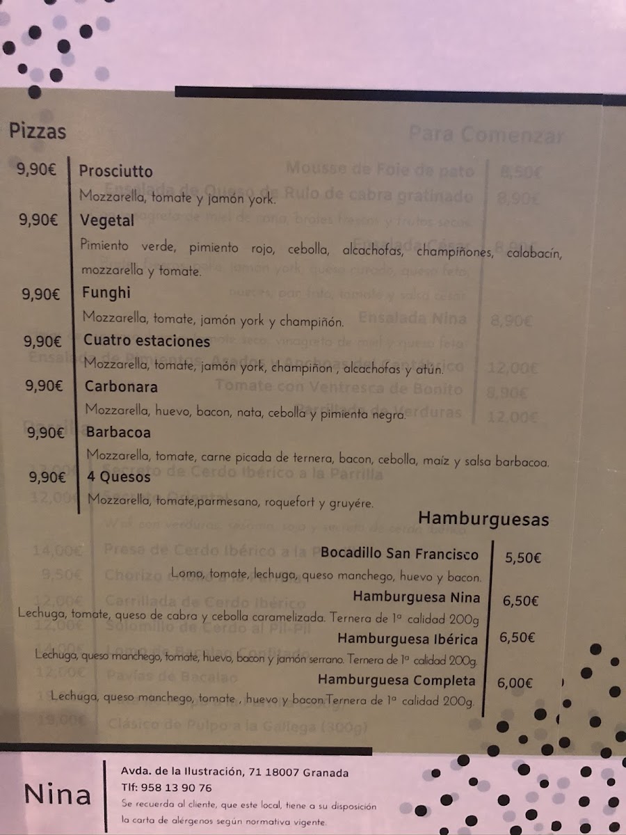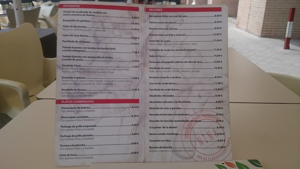 Restaurante Cafeteria Nina Menu